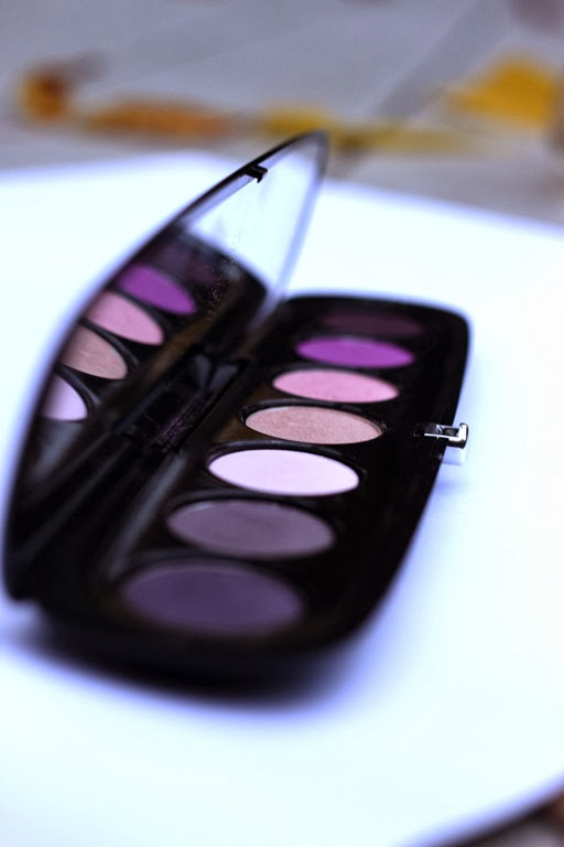 Cette palette contient 7 ombres à paupières (2 mattes, 3 nacrés et 2 scintillantes) dans les tons de gris, de violet et de rose qui complimente très bien les yeux verts. Par contre, les couleurs ne sont pas très pigmentées (comparé à celles d’Urban Decay) et leur tenue est moyenne. À mon avis, ce sont donc des ombres à paupières de qualité moyenne dans un boîtier de luxe assez coûteux.Cote : 3/5